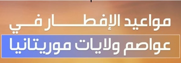 واليكم في مايلي أوقات الإفطار في عواصم ولايات موريتانيا بالنسبة لليوم 12 من شهر رمضان 1447 هجرية.